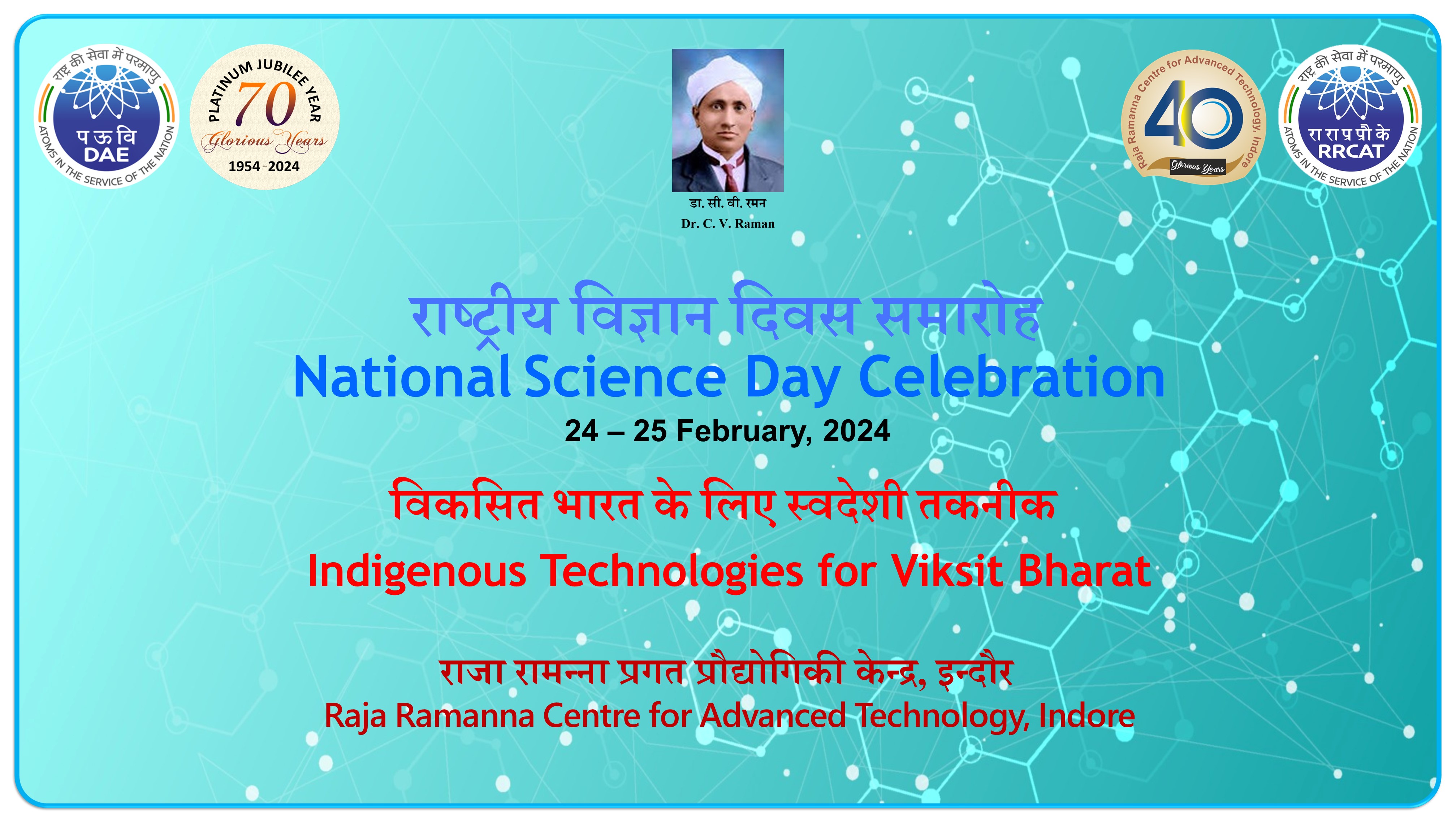 Raja Ramanna Centre for Advanced Technology (RRCAT) observes National Science Day on the last weekend of February every year and keeps laboratories open to students from schools and colleges in and around Indore to see and discuss some practical illustrations of the technologies being developed in this Centre.